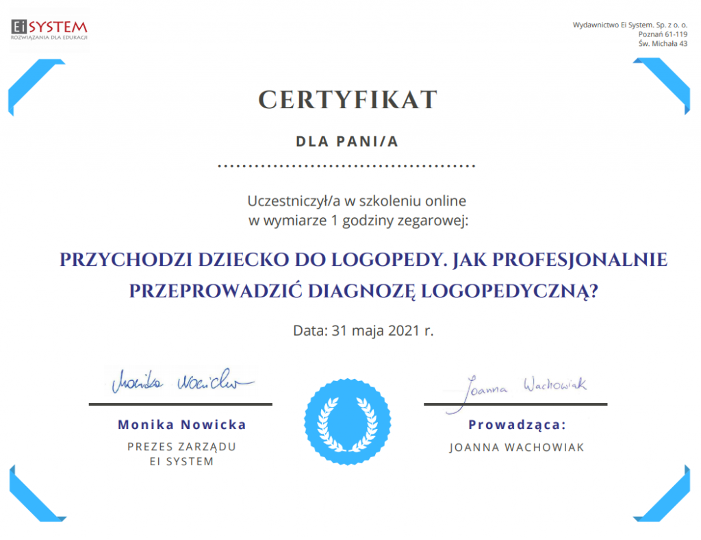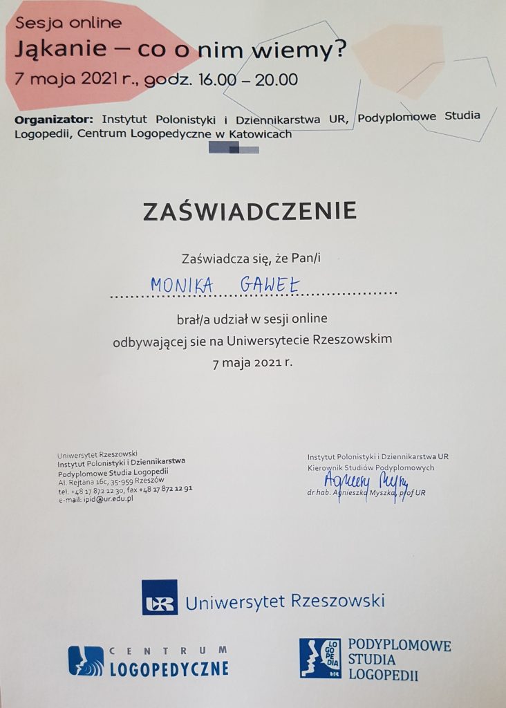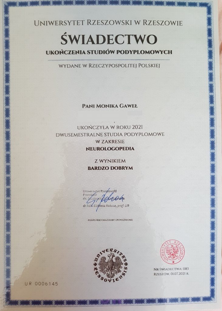 Ceniony terapeuta mowy osób z afazją, dyzartrią, apraksją